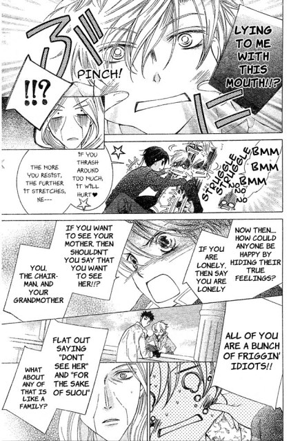 I’m working as much as I can this weekend on Ouran chapter 80. I can’t devote all my time to this weekend to Ouran because I do have a life and husband and we want to go to the movies. (Yesterday, we went on a fun day trip to see the desert blooms). Anyhow…as I do with the other series, here’s a preview/teaser of Ouran chapter 80. I will be done cleaning and editing the chapter soon. I am, though, sticking with the target completion date of 4/30 until I have a clearer estimation of when it will be done.