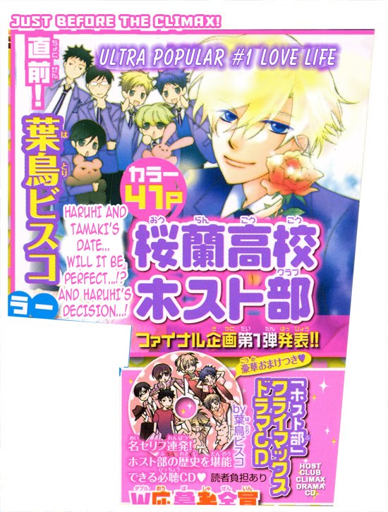Also, Lala 10 will include the final Ouran drama CD as one of the freebies.  If you want the drama CD, then order this issue of the magazine.  I will put up an Amazon Japan link to Lala 10 once the listing for the issue appears.