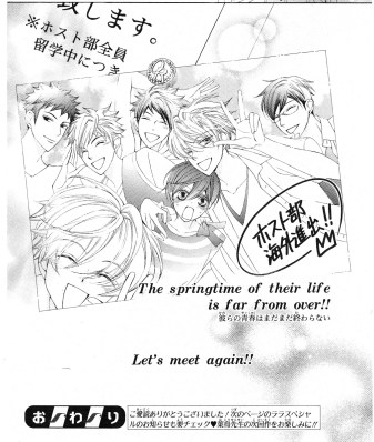 I'm sure a story on Tamaki and Haruhi's couple then married life would be really fun to read. Of course with the rest of the group bugging them constantly ^___^(Touches wood)