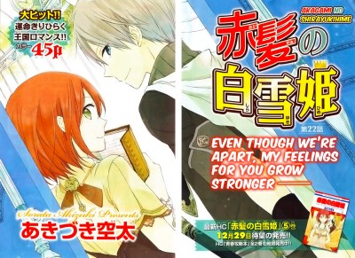 Here is “Akagami no Shirayukihime” chapter 22.  I get the impression after reading this chapter that Shirayuki is in no real danger, but rather the folks after Shirayuki are probably Raji’s adoring siblings.  I hope I’m wrong, because if the siblings then I’m going to be SUPER PEEVED.  Anyhow…it would make sense as far a Izana not being all that concerned about the people after Shirayuki.  He’s probably laughing his ass off in the castle as Zen gallops off to the rescue Shirayuki from a 10-year old.