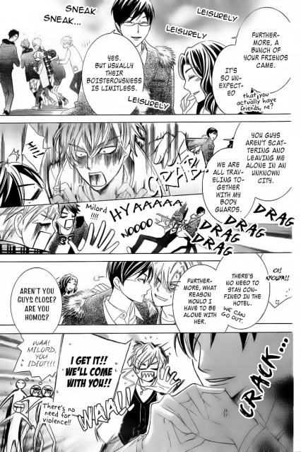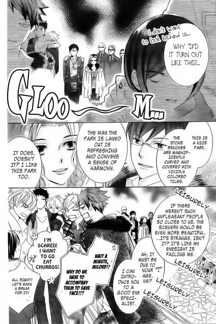 Here are my three favorite pages from the January 2011 Ouran special chapter. The rest of the one-shot is mostly the story of “special guest star” poor little rich girl Nanako sandwiched in a Barcelona travel brochure. So, no, it’s not really about Kyouya either. It’s more like a normal random chapter of Ouran in which the Host Club helps some person in distress. Anyhow, please enjoy this preview. We’ll try to get the rest of the one-shot completed before the end of the month.