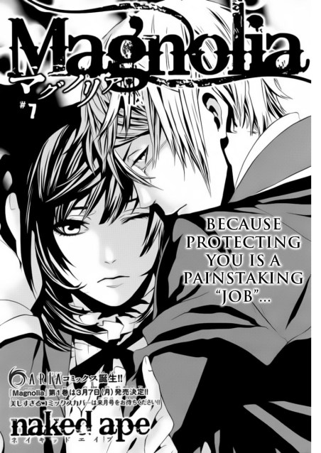 Poor, poor Nagi…is it real or a spell?  Chapter 7 is short, but it’s a real treat for Nagi x Ayato fans.  Personally, I just like Nagi.   This is my favorite cover image so far.  Ayato looks like he/she is being nuzzled by her big brother, but big brother is looking quite possessive and un-big brother-like.  Try getting through that Yugo!