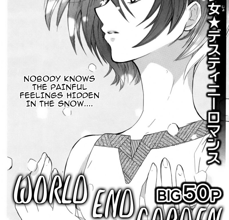 Just in time for the end of winter and the beginning of spring is our final winter one-shot, “World End Garden”. Please forgive me, but I couldn’t help myself on the credits page. This was another big undertaking by the group and they all worked very hard to get this out on time. A big thanks goes out to Suzume and Silver Lunar for getting this one-shot sparkly clean and to Kumiko and Ichigo Stars for doing some miraculous redraws. I’d also like to thank the mangaka Shiina Dai for such a beautiful and emotionally wide-ranging story and for her lovely drawings. I will admit that this was one of the most challenging works I’ve translated in a while, but it’s a lovely story in Japanese and I hope I managed to capture that beauty in English.