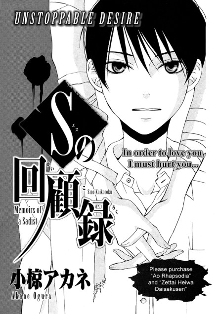 The first of the Aka Lala one-shots, “S no Kaikoroku,” is out on Bakeneko’s Lair. I felt that the subject of S & M was too intensely presented for Omari’s Sister, so I released it on Bakeneko’s Lair. I was disturbed by this oneshot, and therefore don’t recommend this for anyone under the age of 16 or for anyone who is uncomfortable with the subject matter.