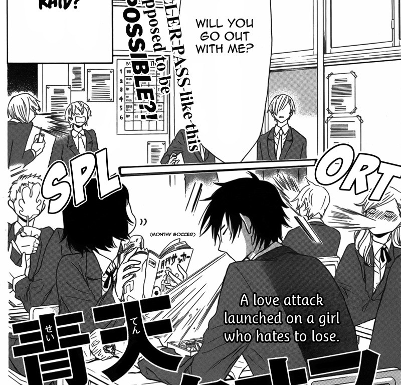 Kota is newish to me. I’ve read a couple of Kota’s oneshots (not scanlated yet, but we will), and they deal with challenging gender stereotypes and roles. This series is no different. The sport in this series is soccer. American are gonna think it’s weird that soccer is characterized as manly, since in the US soccer is okay for boys until a certain age, but ultimately soccer ends up being dominated by females after elementary school. If I’m not mistaken, the US is unique in this view of soccer. Just as an aside, sporty boys in the US usually go on to play American Football, Basketball, or Baseball in Junior High rather than continuing in soccer. I imagine girls continue on in soccer because it’s one of the few team sports they can be in.